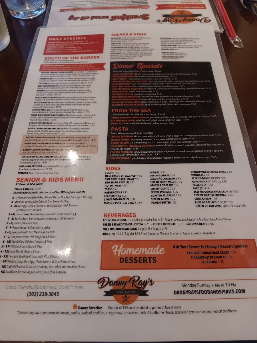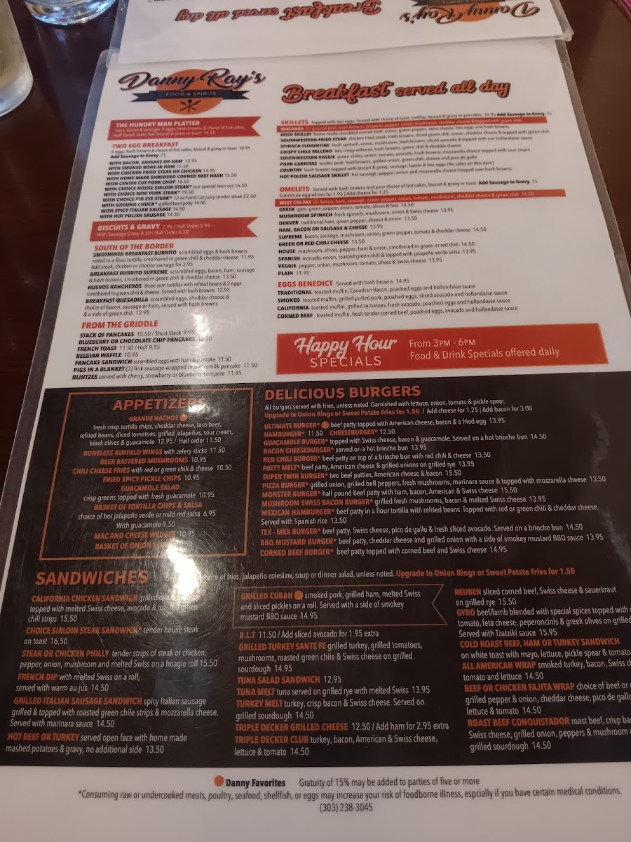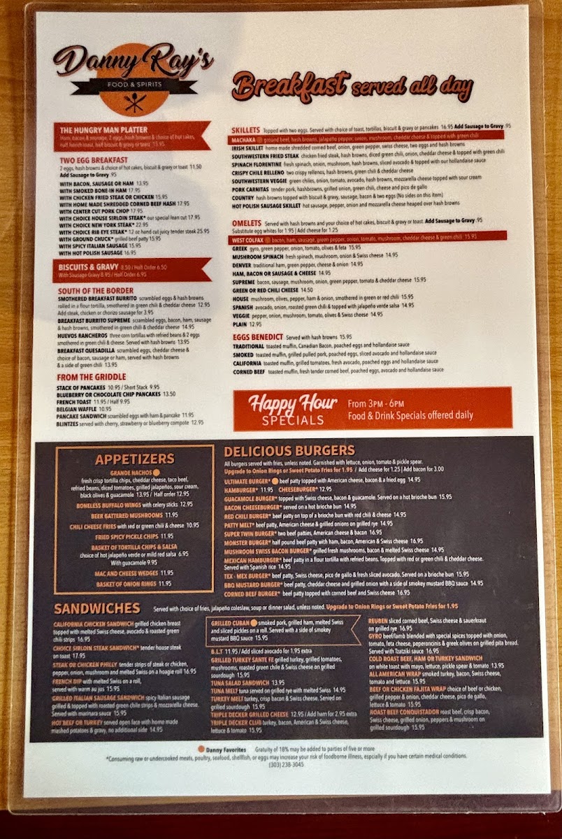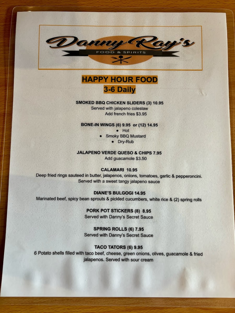 Danny Ray's Food & Spirits Menu